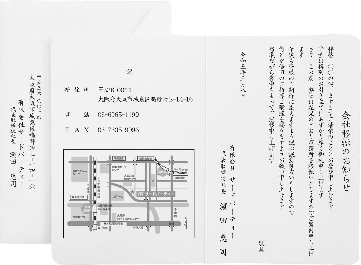 検索エンジンなどで「挨拶状 文面」「挨拶状 例文」で検索していただき、お客様自身でご用意いただくようお願い申し上げます。